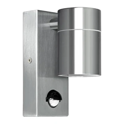 Kerry Outdoor Motion Sensor Wall Lights, Downward Outside Lighting Mains Powered, IP44 Silver Stainless Steel Downlight, Exterior PIR Detector Security Fixture for Front Door, Porch, Garden