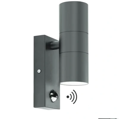 Kerry Outdoor Wall Lights, Up and Down Lamp with Motion Sensor, IP44 Anthracite Grey Stainless Steel Outside Lighting Mains Powered Fixtures, PIR Detector Exterior Sconce