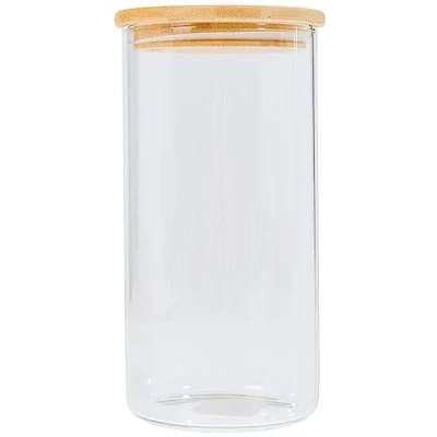 Beautiful storage jar with bamboo lid The glass is available in various sizes (500ml, 800ml, 1.2 litres) These glasses not only create order and keep your supplies fresh and attractive for longer. The glasses can be combined as desired and also stacked.