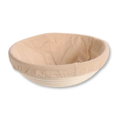 Rattan bread and proofing basket This makes delicious bread with perfect crust Ensuring the optimal fermentation process With textile lining (removable and washable) Dimensions: diameter 25 x 8 cm