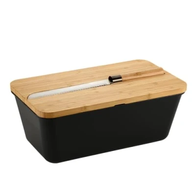 Kesper Bread Box with Knife, Material: Plastic, Bamboo, Dimensions: 34.8 x 20 cm/Height: 15.5 cm, Colour: Black, Brown, 58481