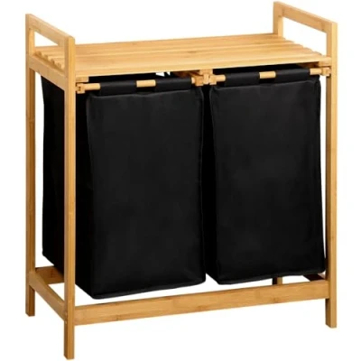 KESPER Laundry Sorter, Material: Bamboo, Polyester, Dimensions: 64 x 33 cm, Height: 73 Colour: Brown, Black, 19487 13