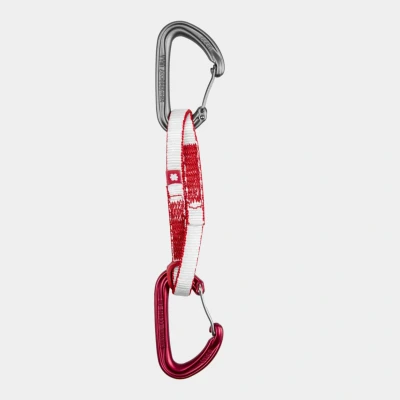 Ultra-light QD set that is easily extended Light-weight Kestrel carabiners with wire gate 8 mm light Dyneema webbing with high durability Length: 40cm Major axis strength: 23kN Minor axis strength: 8kN Open gate structure: 7kN Gate opening: 20mm