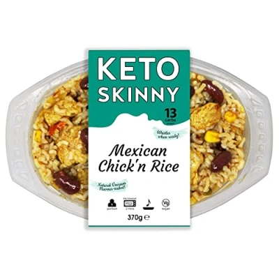Keto Skinny Chilled Mexican Chick'n Rice (Pack of 4, 370g) High Protein, Nutritious Konjac Rice, Zero Sugar Paleo Diet Food Gluten Free, Low Fat Ready to Eat Meals