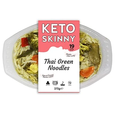 Keto Skinny Chilled Thai Green Noodles Meal (Pack of 4, 370g) Gluten Free Low Calorie Zero Sugar Konjac Paleo Diet & Vegan Food High In Protein Fat Ready to Eat Meals
