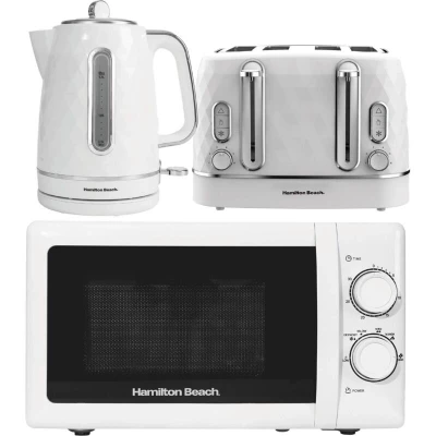 Kettle, Toaster & Microwave Set, Diamond Collection by Hamilton Beach, White