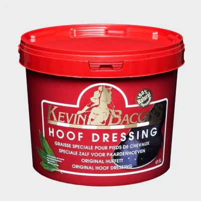 LAUREL BALM FOR THE MAINTENANCE AND PROTECTION OF HORSE'S HOOVES Maintaining the suppleness, elasticity, and balance of horses' hooves calls for the use of top-quality products, amongst other things. Our Hoof Dressing reflects this philosophy. We have been making Kevin Bacon's Hoof Dressing according to traditional methods for more than 32 years. It is a 100% natural product made from animal fat and fresh laurel leaves that are macerated to release their active substances. Our hoof dressing does not merely give the horn a pretty shine. Kevin Bacon's Hoof Dressing penetrates and nourishes the hoof deep down. Using it regularly keeps the hoof wall from drying out, protects it from dampness, and activates horn growth. All of these properties make Hoof Dressing a remarkable product that is used and recommended by all riding professionals. Like all natural greases, our Hoof Dressing hardens in winter because it contains no solvents or crude oil derivatives.We have thus devised a winter formula that is 25% richer in oil to keep our Hoof Dressing soft and creamy even in colder weather.