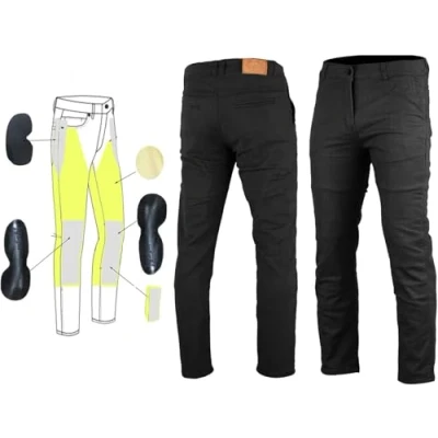 Kevlar Lined Modern Style Black Chino Motorcycle Jeans with Removable CE Protection