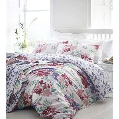 Elegant and simple, featuring bouquets of flowers in an shades of blue, purple, and green Fully reversible, featuring a unique design on the other side. 100% 200 thread count cotton percale King duvet cover (220 x 230cm) and 2 pillowcases (50 x 75cm) Machine washable
