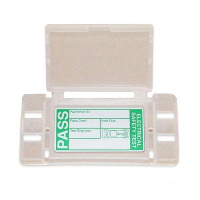 Robust PAT label protection tags for cables up to 1.5mm. 50 compact snap tags, max label size 41x25mm. Withstands dirt, oil, grease & water. Ideal for harsh environments.