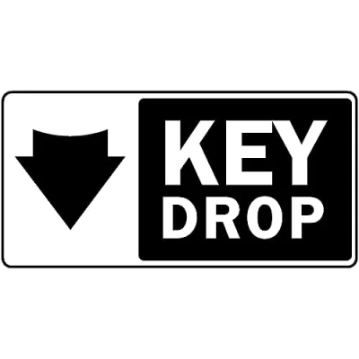 Key drop down arrow delivery sign. Self adhesive sticker. Printed using the latest digital technology and laminated for extra durability. Remove backing film and apply to dry, smooth, oil free surface. All signs come with a 5-year warranty. All our signs are UV resistant meaning they will not fade in sunlight. Our vinyl stickers are temperature resistant from -40°C to +80°C.