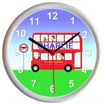 Key Expressions Personalised RED DOUBLE DECKER BUS Childrens Bedroom Wall Clock