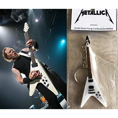 Keychain Guitar Gibson Flying V James Hetfield Metallica White