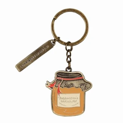 Add a sweet touch of nostalgia and charm to your everyday essentials with this Paddington Bear Marmalade Jar-shaped keychain; Inspired by Paddington’s iconic love for marmalade sandwiches, this keychain features a bright orange marmalade jar design, instantly recognizable to fans of the beloved bear from deepest, darkest Peru Crafted from durable metal and enamel, this keychain is both functional and beautiful Measures approximately 1.5 inches; The compact size and sturdy split ring make it easy to attach and detach, while the high-quality finish ensures it stands up to daily use Whether you're a lifelong fan or just discovering Paddington’s heartwarming adventures, this adorable accessory makes a delightful collectible or thoughtful gift Contained in protective packaging; Ready for easy gifting