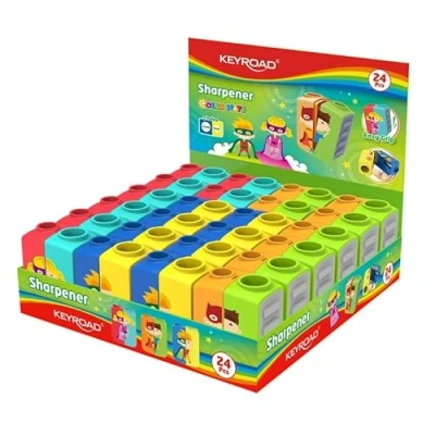 KEYROAD Colour Mate Pencil Sharpener/Plastic/Cartoon Design/for Kids, Students and Preschoolers/for School, Nursery Home/Colour Mix/24 Pieces Per Pack