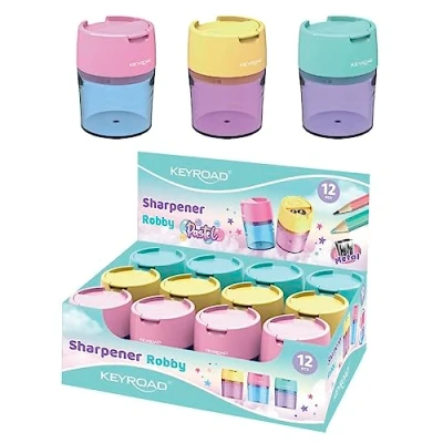 KEYROAD Ergonomic Double Pencil Sharpener Pastel/Pack of 12 / Steel Blades/Pencils and Coloured Pencils/for Nursery Preschool School/Sharpener
