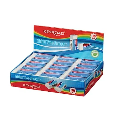 Keyroad KR970981 - Eraser for erasing pencil and coloured pencil - ideal for school and office. 30 pieces packed in the display. Colour: white. Made of high quality thermoplastic rubber Colour: uniform, white For kindergarten, school and office. Packed in display International products have separate terms, are sold from abroad and may differ from local products, including fit, age ratings, and language of product, labeling or instructions.
