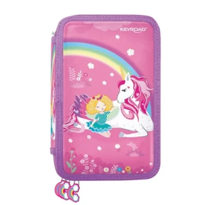 KeyRoad Pencil Case, Equipped Case with Contents 3 Compartments, 52 Elements, Maxi 20.5 x 13.5 6 cm, Assorted Colours