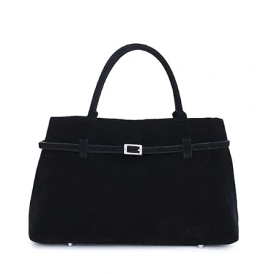 KEYULI Modavo Suede Tote Bag,Women's Large Brown Top Handle Work Handbag,Modavo Vintage Faux Bag CapacityShoulder Handbag (Black,One Size)