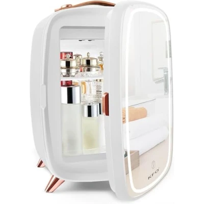 The KFO Skincare Fridge combines professional-grade cooling (6°C ±0.5°C) and ultra-quiet 20dB operation to protect your skincare essentials (vitamin C serums, hyaluronic acid creams) and makeup products from heat degradation. Designed as a portable beauty fridge, its 6L capacity stores up to 8 beverage cans or 15 cosmetic bottles, while adjustable shelves and UV protection ensure flexible organization and light-sensitive skincare preservation. Perfect for bedrooms, offices, or travel, this aesthetic mini fridge features an Energy-efficient design saves 30% power vs. conventional models The anti-slip silicone base guarantees stability, and its compact design (22.5×29.5×34.5 cm) fits seamlessly into small spaces. With customizable luxury packaging , it’s an ideal gift for beauty enthusiasts seeking a pro-style skincare fridge that blends functionality with minimalist elegance.