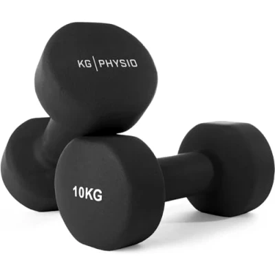 kg Physio Weights Dumbbells Set Women & Men Neoprene Coated Sweat Resistant with Anti Roll Technology A3 Exercise Poster, Gym Equipment for Home, 1 10 Dumb Bells Pair