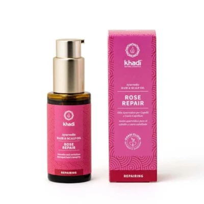 LOVING NUTRIENT CARE FROM THE INSIDE: The nutrient cocktail in our Rose Repair Hair Oil acts like an elixir of love that embraces your hair and touches it from the inside. Repairs and regenerates structurally damaged and stressed hair. This extends from the shaft to the tips. SOOTHING AND REBUILDING FOR STRESSED HAIR: The cooling nature of the rose soothes stressed scalps, smoothes the hair structure, moisturizes and heals stressed and damaged hair. Rose Repair rebuilds damaged hair in harmony with nature making it fit for everyday life. NURSING POWER THROUGH ANTIOXIDANTS AND VITAMINS: Rose Repair is particularly rich in antioxidants and provides hair and scalp with important vitamins and minerals. Each application is like a relaxing vacation for your hair, providing intensive care without weighing it down. WITH UP TO 20% ACTIVE INSTRUMENT CONTENT: The unique secret of effectiveness is based on a highly concentrated extract of hand-picked Ayurvedic medicinal plants. The proportion of the khadi elixir is up to 20% compared to only 2-5% of active ingredients in conventional hair oils. LUXURY CURE FOR YOUR HAIR: Look forward to the mysterious power of the rose, which transforms your hair care into a luxury cure. Like all khadi hair oils, Rose Repair is 100% natural and free from harmful additives.