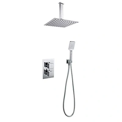 Thermostatic fitting with self-regulation of the temperature thanks to ceramic disc Extra flat stainless steel shower with rain effect, 20 x 20 cm, attachment to the shower arm 2-way water outlet: through the shower head and through the hand shower with whirlpool ✅ Solid brass body for easy installation with screw mounting brackets ✅ Square handle with 3 different water outlet positions: pressure feeling, foaming exit or natural rain. With PVC hose in silver, Weight: 0.661386786 pounds, Manufacturer: Oxen