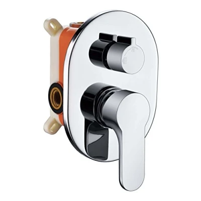 Kibath 446351 Flush Mixer Tap Val Outlet Wall Mounted Round Gloss Chrome Finish Includes Water Socket, Silver PVC Flexo, Shower Arm and Extra Flat Spray