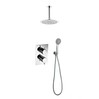 ✅ Thermostatic taps with self-regulating temperature by ceramic disc ✅ 2-WAY WATER OUTLET: Top for coupling with shower spray and second outlet for coupling with hand shower handle outlet ✅ Square trim plate with extra-flat design with round handles for easy operation, all made of brass ✅ Solid brass body for easy installation with screw fixing brackets, Weight: 0.440924524 pounds, Manufacturer: Kibath