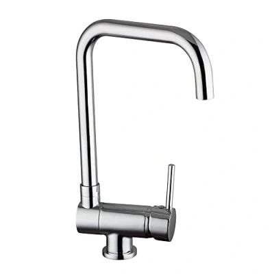 Kibath L483561 Kitchen Mixer Tap with 180 Swivel Spout for Sinks Little Space or Windows Close. Made of Brass Finish in Chrome Gloss.