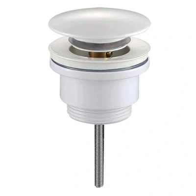 Kibath L490671 White Universal Clic Clac Valve Push up washbasin and Bidet Drain, matt Finish. 1 1/4 nut Made of Brass