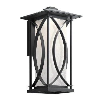 The Ashbern collection features a modern Textured Black finish. Overlapping arcs create visual interest, and coordinate with a variety of architectural home styles, from traditional to soft modern. The classic box shape keeps lines clean for maximum curb appeal.