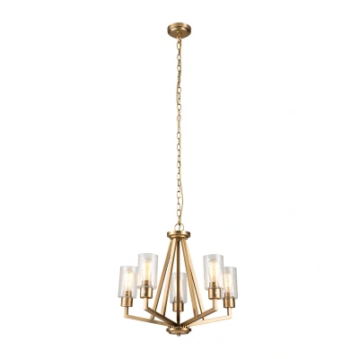 Deryn pendant light, 5-bulb The Deryn pendant light with clear glass shades is the perfect choice for anyone who wants to add a special touch to their living or dining room. With its five flames, it ensures pleasant and even illumination of the room. The clear glass shades lend the light a timeless elegance and allow the light to shine particularly beautifully. Thanks to the option of varying the height of the pendant light during installation, it can be perfectly customised to suit individual needs. The Deryn pendant light is a real eye-catcher and is guaranteed to create a beautiful atmosphere.