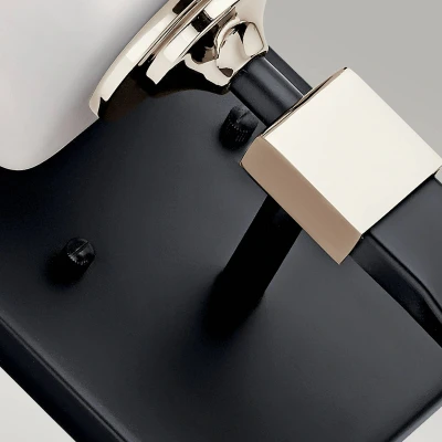 Marette bathroom wall lamp - a modern wall torch The Marette wall lamp made of steel and opal glass with IP44 protection against splashing water is suitable for private or hotel bathrooms. On its twisted, black lacquered arm sits a square shade made of opal glass, which houses a G9 socket. An LED bulb with a matching base is already included in the scope of delivery. The Marette wall lamp looks elegant in a modern way due to its shape and the colour contrast between black and white.