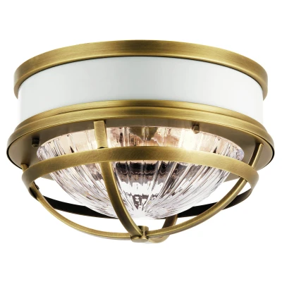 Kichler Tollis Bowl Semi Flush Ceiling Light Natural Brass & White