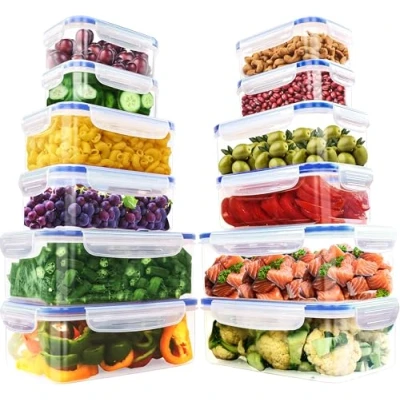 24 set - Contains 12 containers and 12 lids in different sizes. For different storage needs, the set includes 4 containers with a capacity of 500 ml, 4 containers with 1220 ml capacity, 4 containers with 2250 ml capacity Superior Airtight Seal - Our airtight food storage containers feature advanced locking lids with a silicone seal, designed to keep your food fresh and prevent leaks. Enjoy worry-free food storage whether at home or on the go. Durable & Safe Plastic - Crafted from BPA-Free plastic, these plastic food containers with lids are durable and resists stains, which are ideal for all your culinary needs. Versatile Kitchen Essentials - Ideal as meal prep containers or for storing leftovers. The food containers with lids are microwave, freezer, and dishwasher safe, offering ultimate convenience for busy households. Versatile Kitchen Essentials - Ideal as meal prep containers or for storing leftovers. The food containers with lids are microwave, freezer, and dishwasher safe, offering ultimate convenience for busy households.