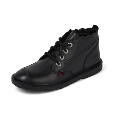 Kickers Adlar Hi Scallop Leather Ankle Boot, Black, 1 UK Child