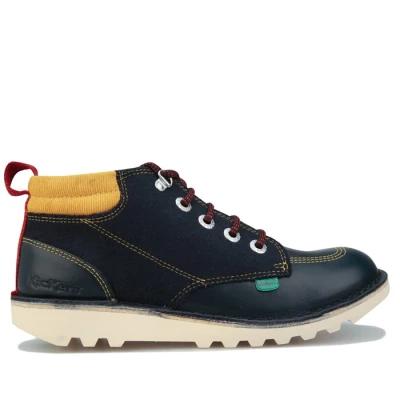 Junior Boys Kickers Kick Hi Winterised Boots in navy - dark blue.- Durable leather and textile uppers.- Lace closure.- Inner zip and woven heel tab for easy on - off.- Classic triple stitch detail.- Contrast corduroy collar.- Comfortable textile lining.- Leather-lined sockliner.- Iconic Kickers fleurette and tabs.- Kickers branding at tongue and side heel.- Durable rubber outsole.- Leather and textile upper Textile and leather lining Synthetic sole.- Ref: 1-15686