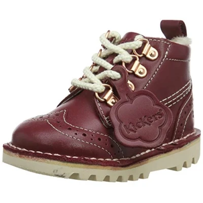 Kickers Childrens Unisex Fur Hiker Kids Red Boots Leather Size UK 10