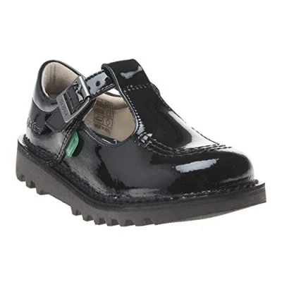 Kickers Infant Girl's Kick T Bar Black School Shoes, Patent Black, 8.5 UK Child