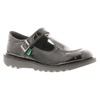 Kickers Junior Girl's Kick T Vel School Uniform Shoe, Patent Black, 2 UK