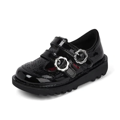 Forever timeless, the T-Bar is the stylish choice that was made for dresses and skirt uniforms. Patent leather smartens up any uniform, but it's also easy to keep clean and looking great all year long. The easiest fastening for small kids, giving them independence when dressing. Sturdy and durable, the deep grooves provide extra grip. Our discreet branding is school appropriate, but true to our iconic Kickers style.
