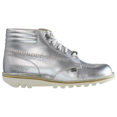 Kickers Throwback Ankle Womens Silver Boots Leather Size UK 3