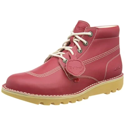 Kickers Unisex Vegan Kick Hi Classic Ankle Boots Plant Based Material Extra Comfortable Added Durability Premium Quality, Red, 6 UK