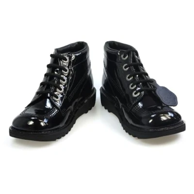 Kickers Women's Kick Hi Classic Ankle Boots Extra Comfortable Added Durability Premium Quality, Patent Black, 4 UK