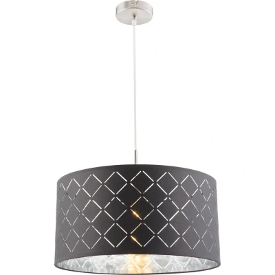 With this extremely modern hanging lamp in dark grey, from the Kidal series, luminous accents are set. Versatile, this model, with its decorative punches and the silver-metallic shade inside the textile-covered shade, can contribute to a comfortable environment. This lamp has an E27 socket, which allows you to choose your bulb freely (max.60W). This lamp has a diameter of 40 cm, which allows it to be integrated into many living areas. We recommend LED lamps, due to their power savings and longevity. Product features: Pendant lamp metal nickel matt, textile grey, silver metallic, cable pvc transparent, height adjustable, ø: 400mm, h: 1400mm, excl. 1x e27 60w 230v