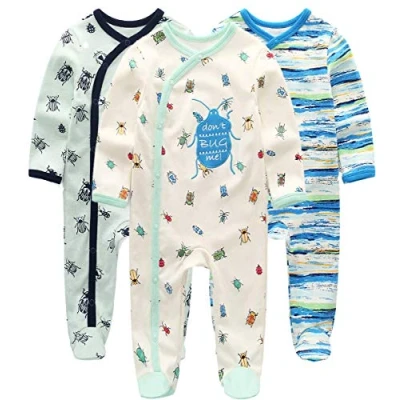 Material: 100% cotton, skin-friendly pure cotton for best breathability. Cute sleep-suit in washable interlock quality - baby romper for boys and girls, cotton baby sleepwear romper with cartoon animal motif. With this 100% soft cotton bodysuit with crew neck and press studs at inseam for easy dressing and nappies Care instructions: machine wash Sleepsuit in a pack of 3