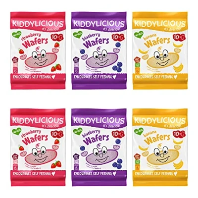 Kiddylicious Blueberry, Banana, Strawberry Wafers Gluten & Dairy Free Kids Snacks Mixed Variety Pack 3 x 20 Twin Packs