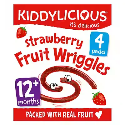 Boots3 Advantage card points. Kiddylicious Fruit Wriggles, strawberry, infant snack, 12months+, multipack, 4x12g FREE Delivery on orders over 45 GBP.
