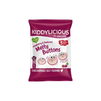 JoybuyKiddylicious Raspberry&Beetroot Melty Buttons are soft, gluten-free snacks made with real fruit and veg for babies 9 months+ to encourage self-feeding. Free from artificial additives, they’re a tasty, wholesome treat that supports healthy eating and hand-eye coordination.